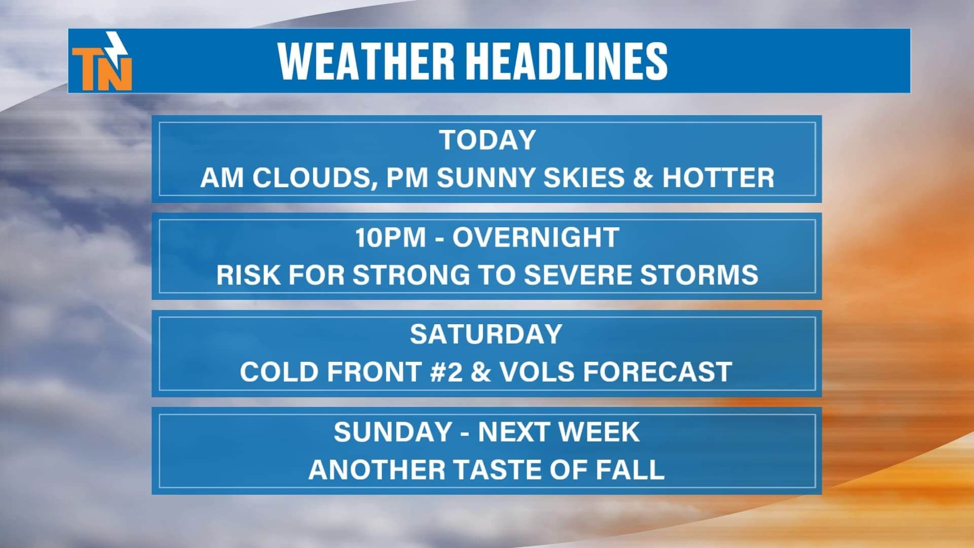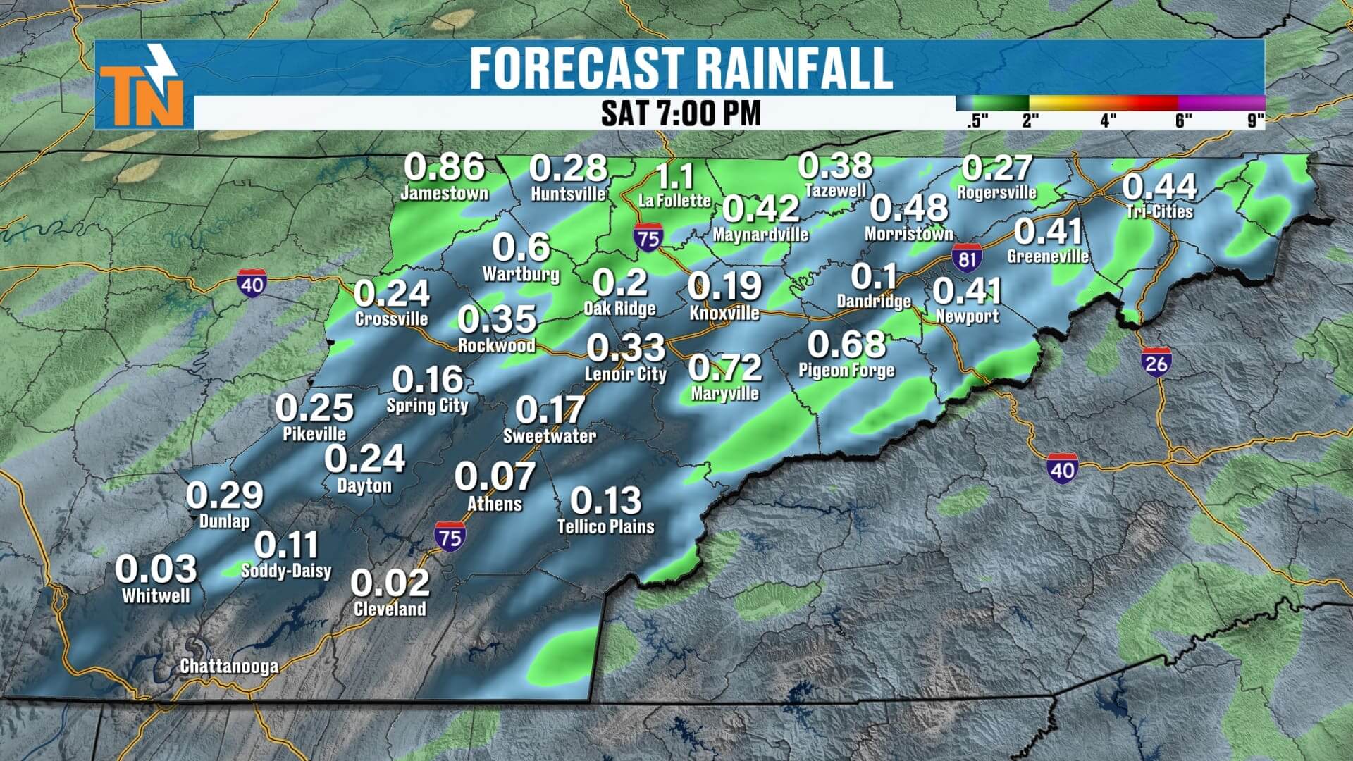 We’ll start the day with lingering showers, mainly through the morning to early afternoon (around 2–3 PM). By kickoff for UT football, most of that rain should be gone!