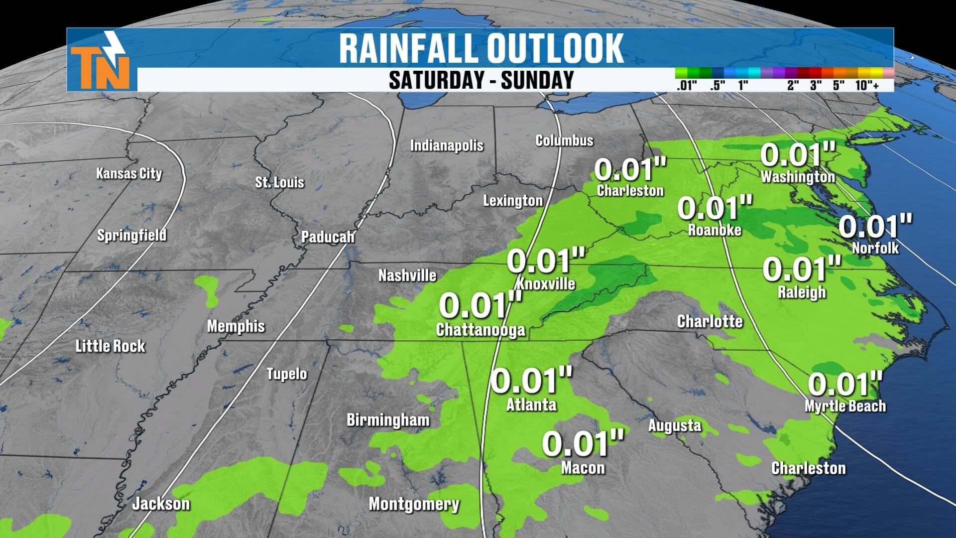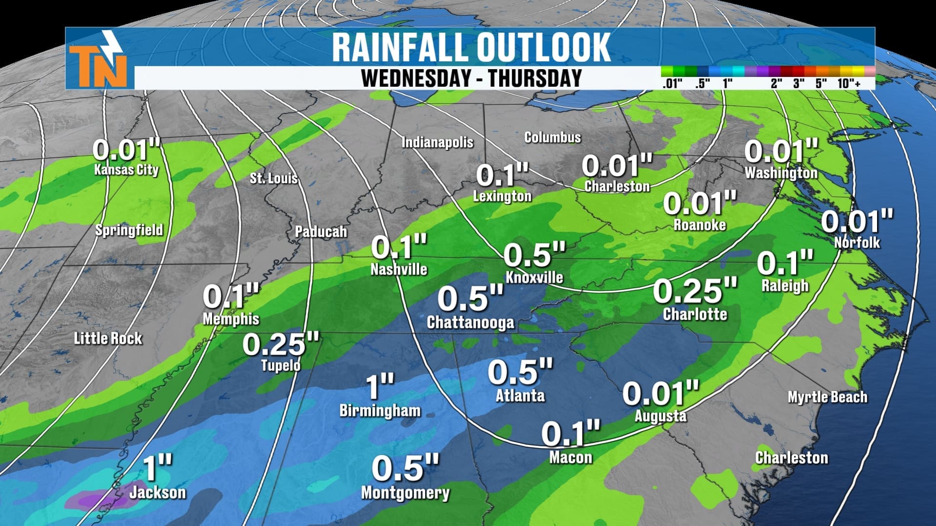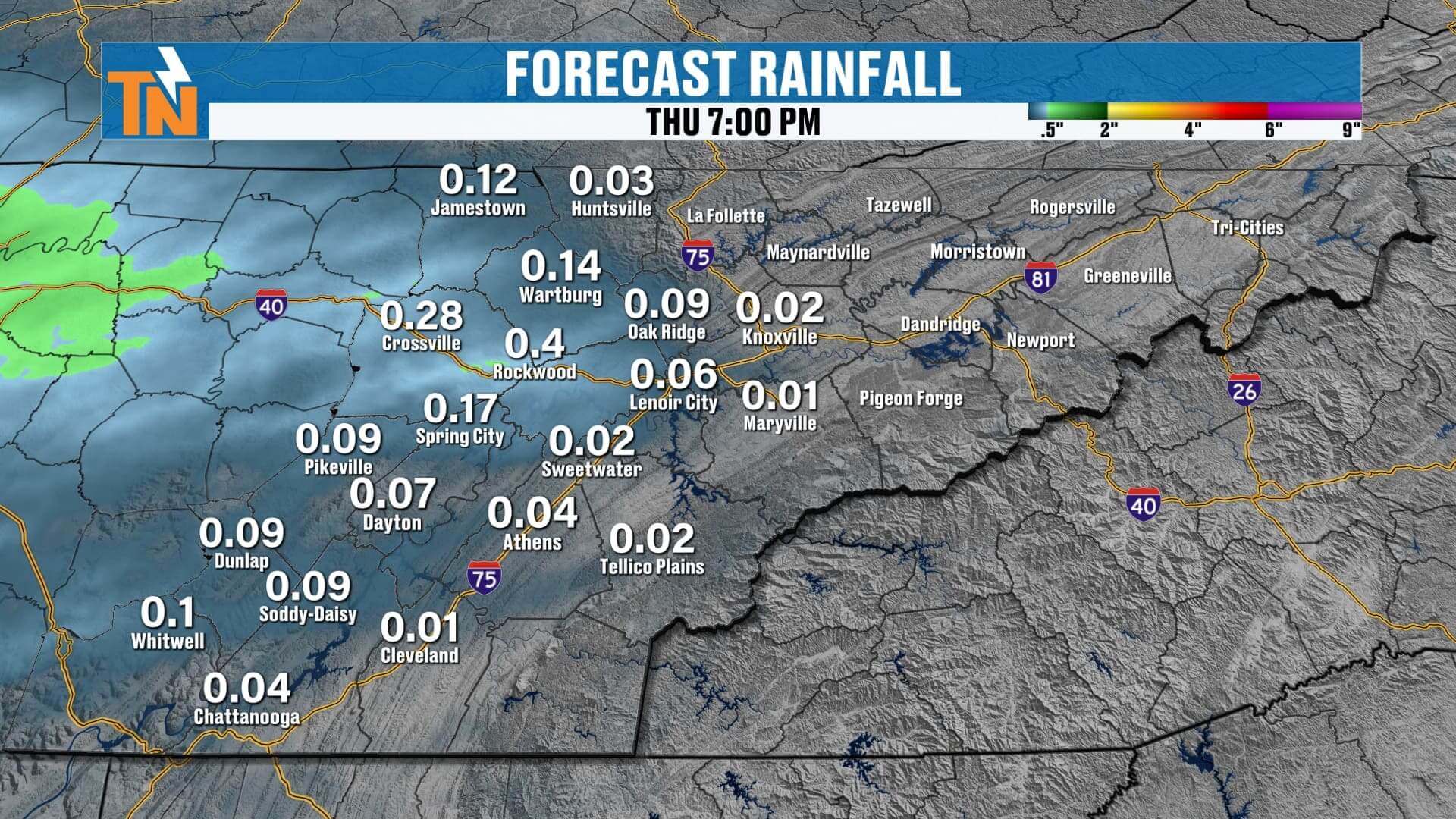 • East Tennessee sees 0.25″ to 0.75″ through Wednesday