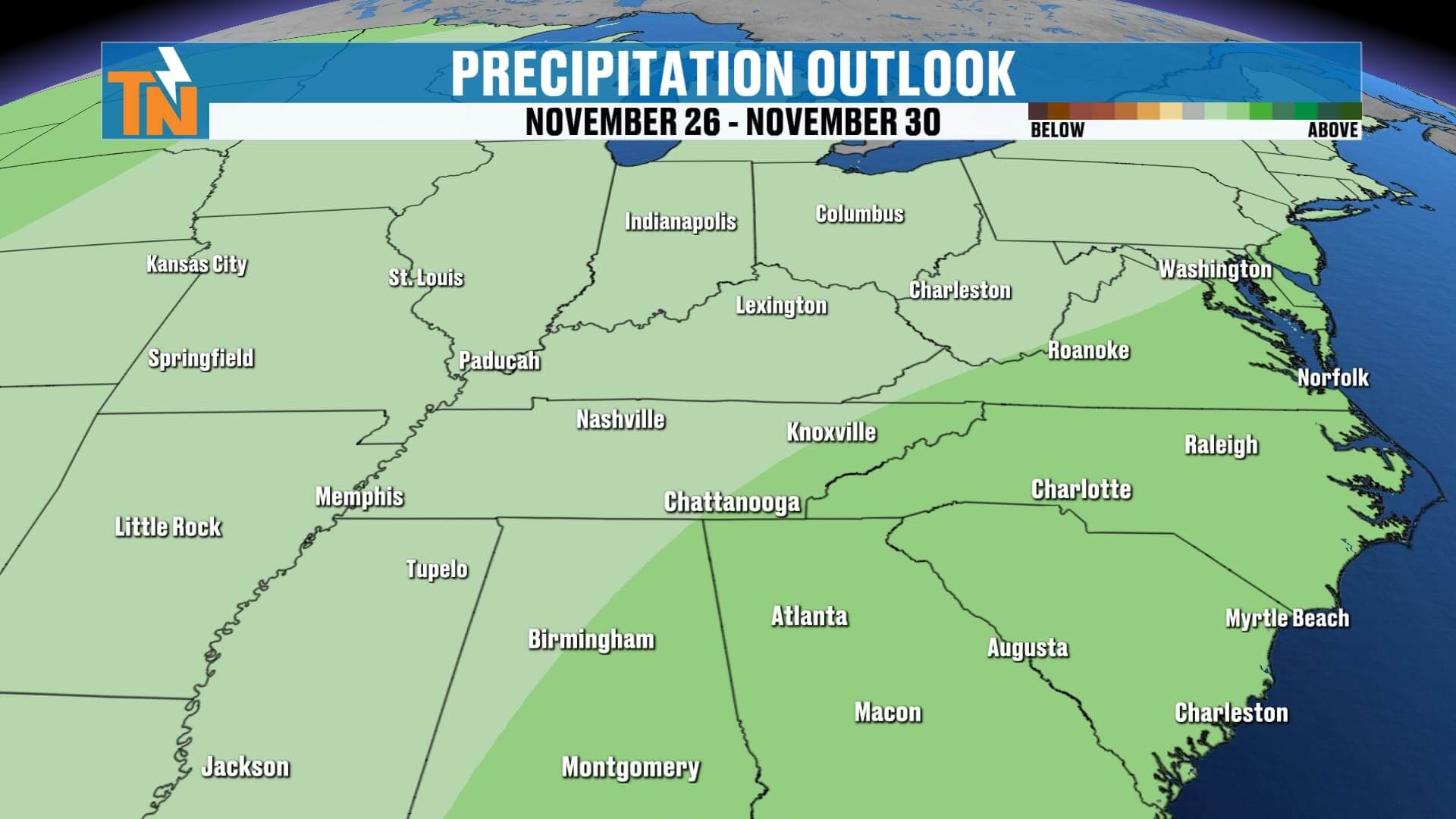 So yes — the country is about to get busy, and East Tennessee is positioned right in the path of several rounds of rainfall, and possibly even some snow after Thanksgiving.