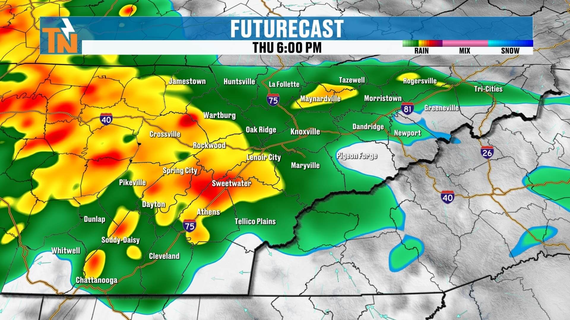 • Another round of heavy rain aimed at the Tennessee Valley