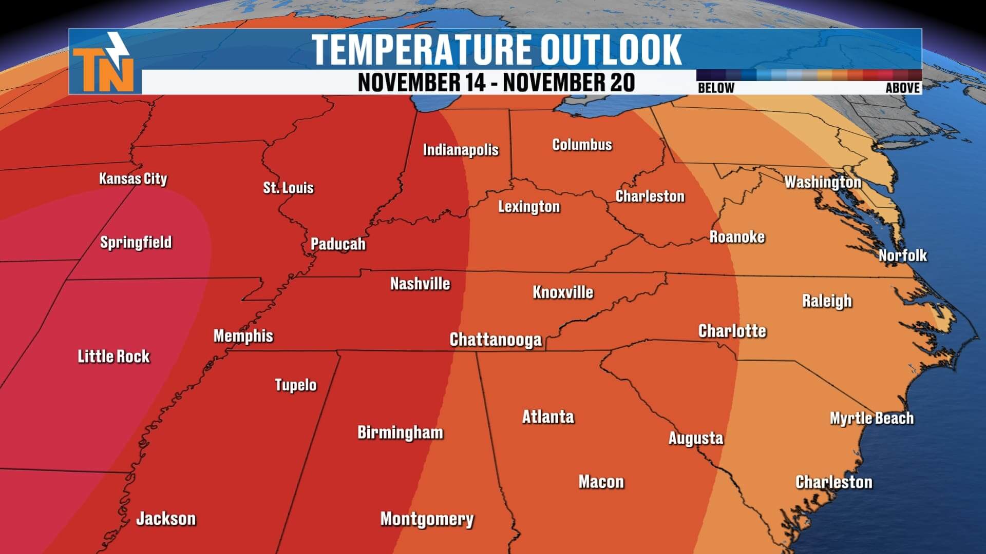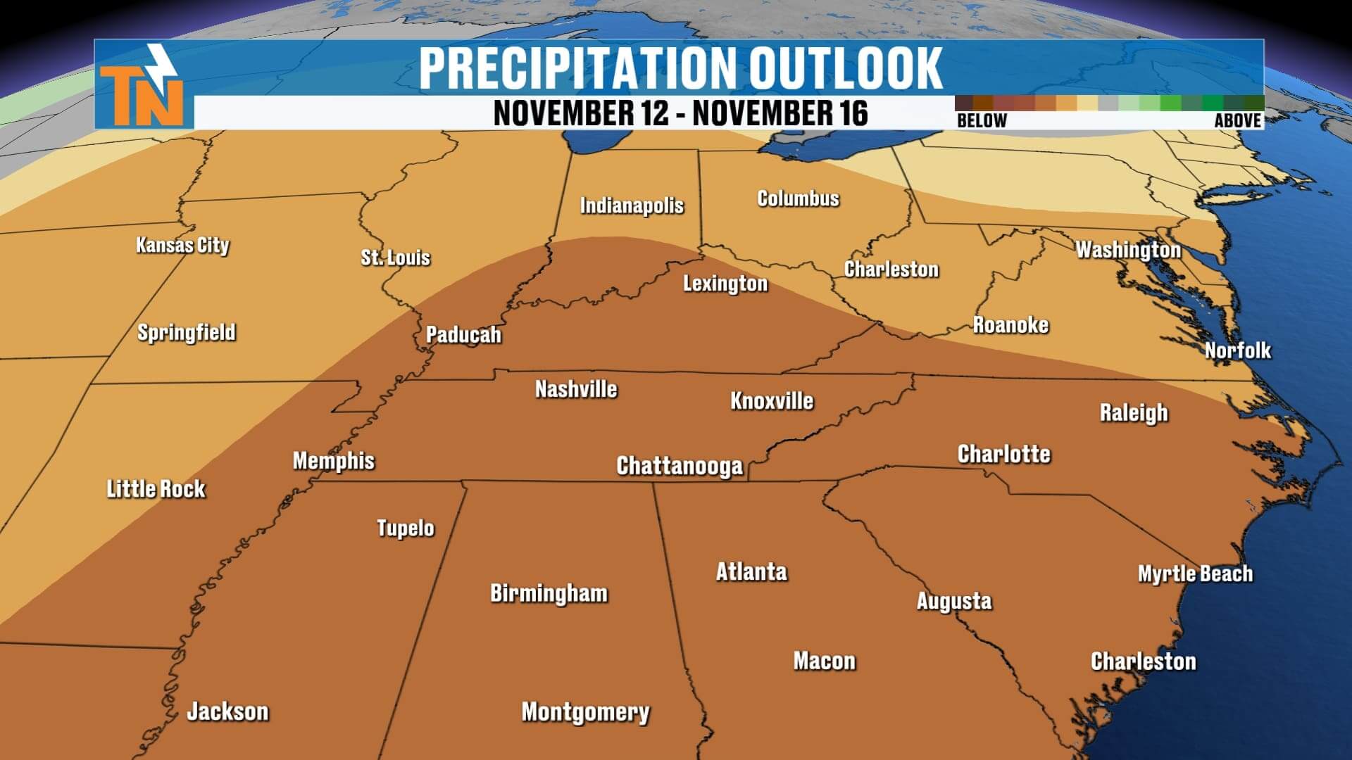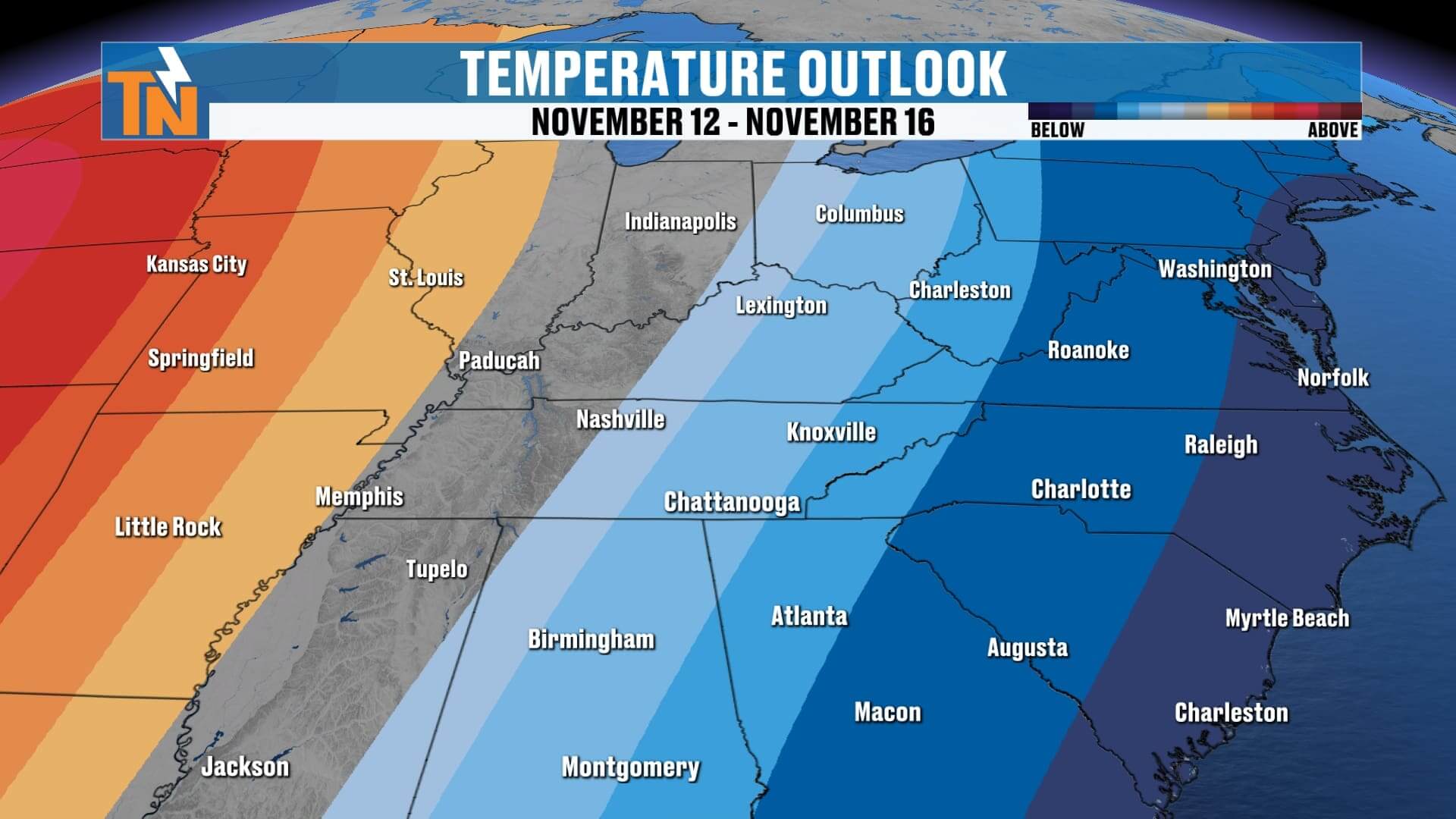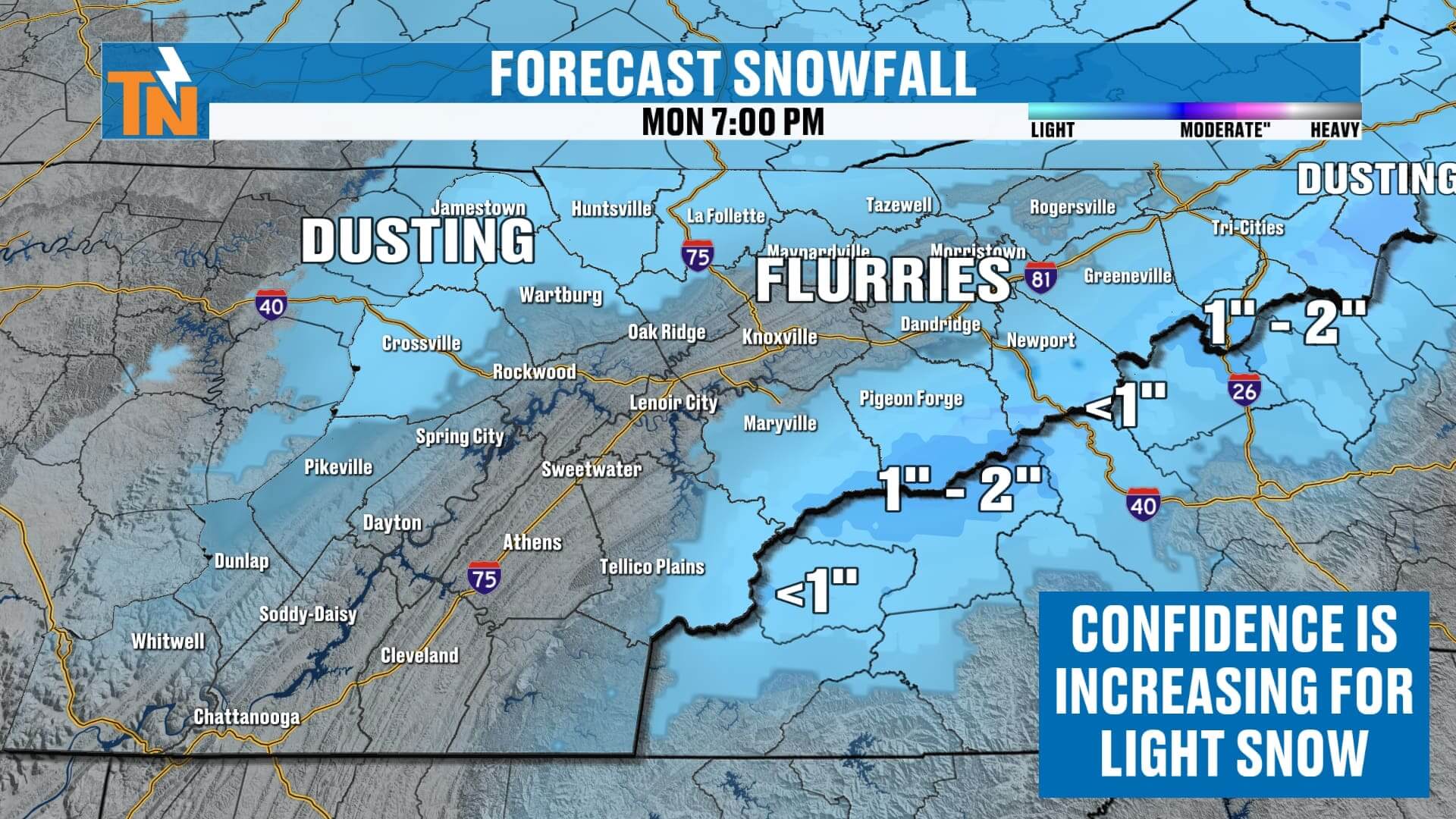Sunday Night–Monday Morning: Light snow showers possible, mainly across the northern Plateau and Smokies.