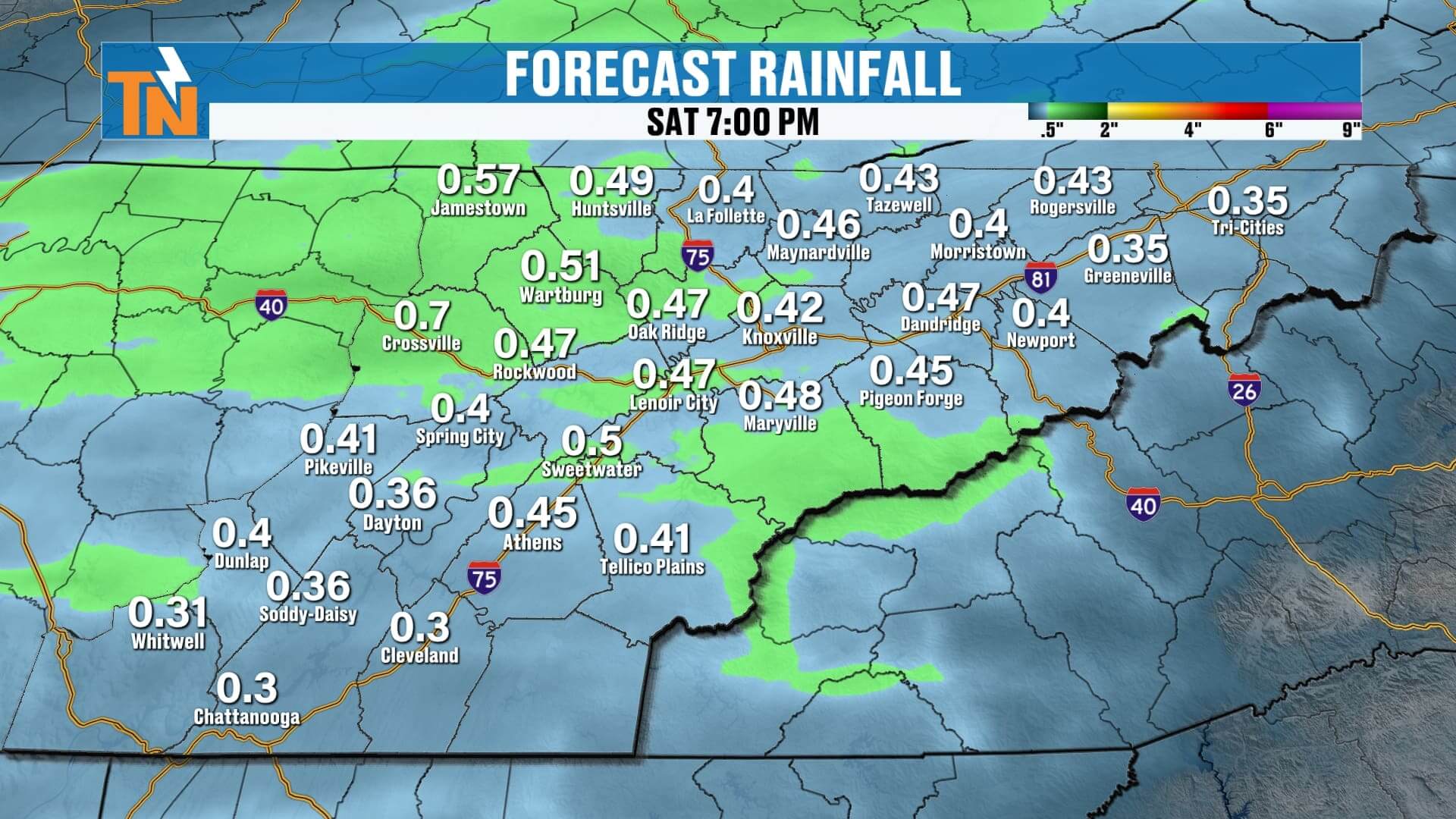 Rainfall totals should range from a quarter to a half inch, with some locally higher amounts.