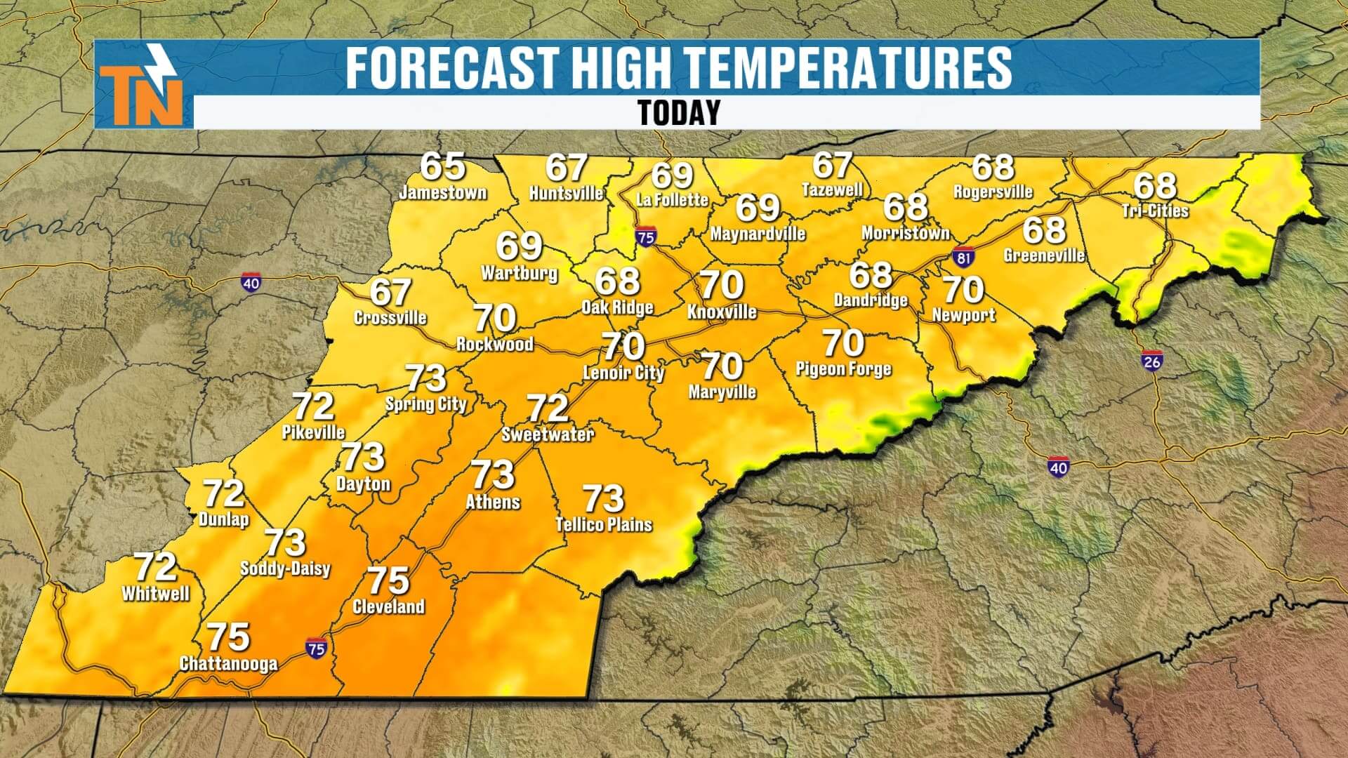 Even with morning clouds, it’s a mild start with temperatures already in the 60s across parts of East Tennessee.