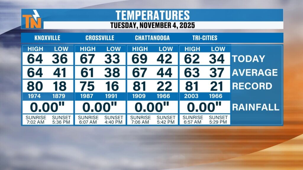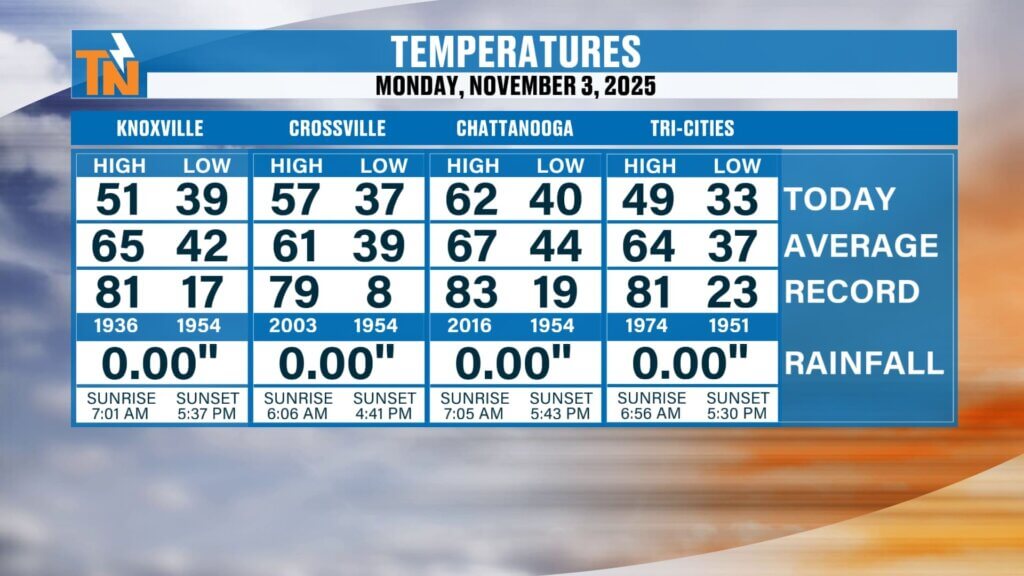Good morning and happy Tuesday, everyone! We’re starting off with another round of dense fog across East Tennessee this morning. The National Weather Service has issued a Dense Fog Advisory until 10 a.m., so take it slow on your morning commute. Visibility will be reduced to near zero at times, and temperatures are cold enough […]