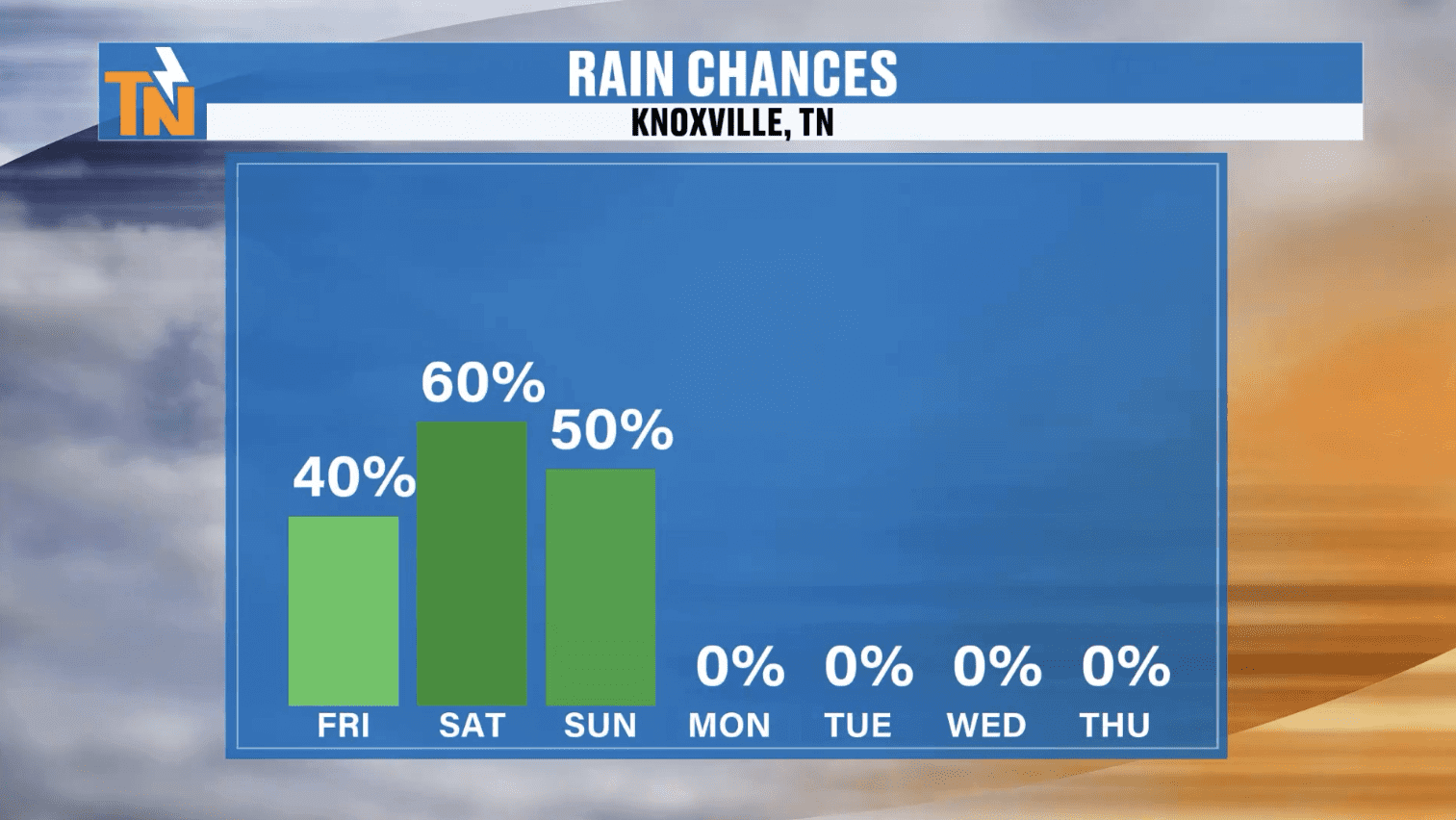 Tuesday–Thursday: Temperatures settle into the upper 70s to near 80, with low humidity. Morning lows will dip into the 50s and low 60s—perfect for that first hint of autumn across East Tennessee.