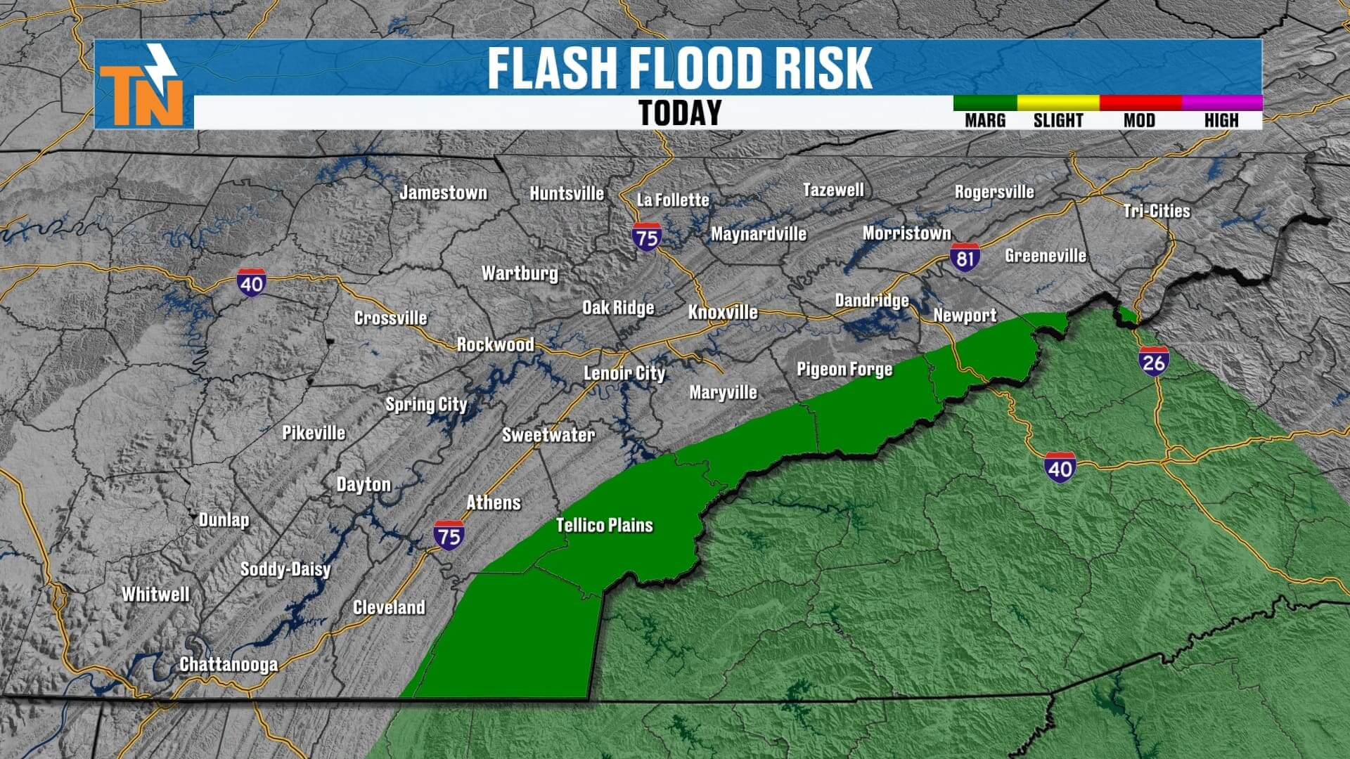A small wave of energy will spark scattered showers and thunderstorms today, especially south of I-40 where moisture is more abundant. The southern valley and southern Appalachian mountains will see the best chance for rainfall, along with localized flash flooding in spots.