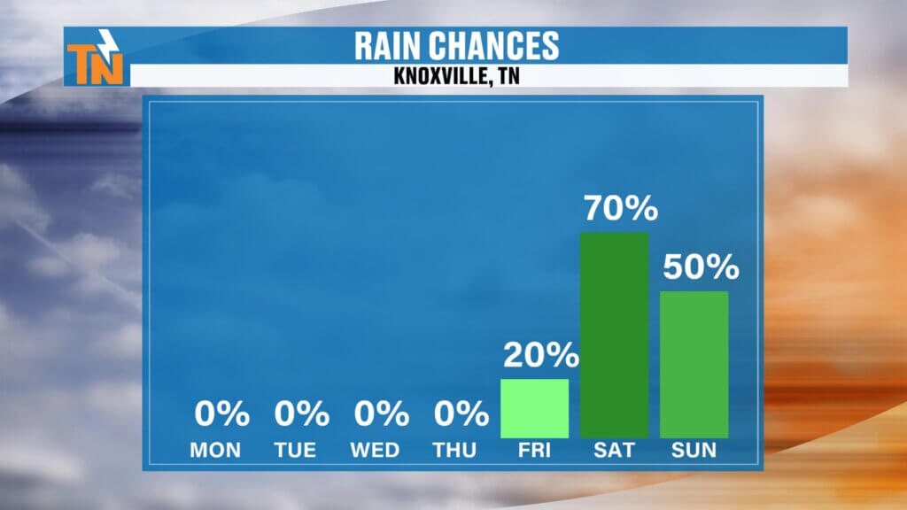 With rain chances increasing, this could impact outdoor plans, including events like the Dogwood Arts Festival and other local festivals across East Tennessee.