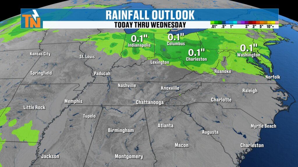 - Lighter amounts possible in Upper East Tennessee