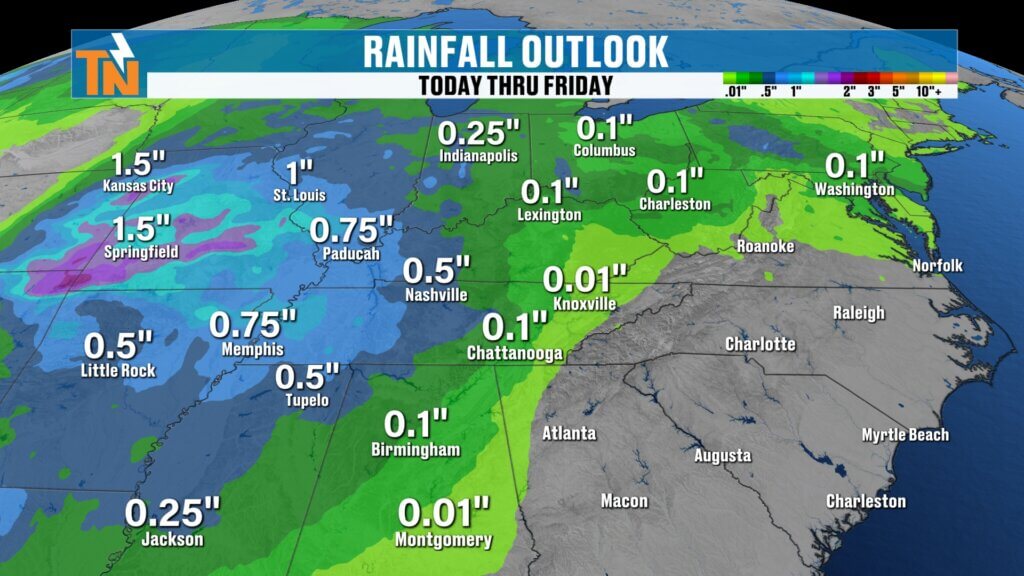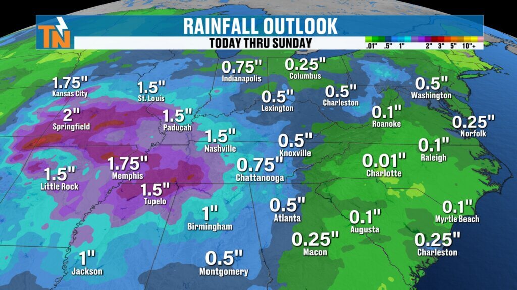 - Heavier totals likely west of East Tennessee