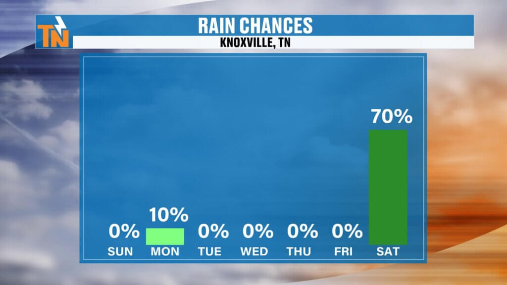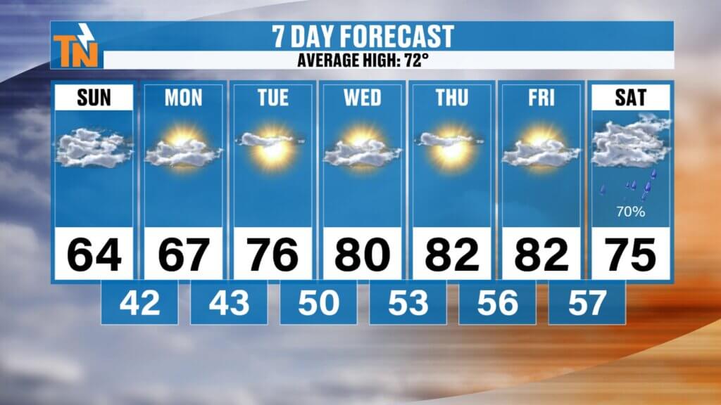 - Tuesday through Thursday: Dry conditions continue with plenty of sunshine