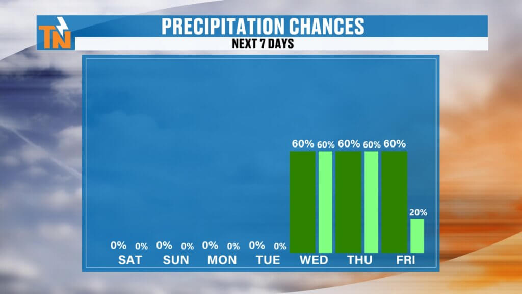 - Rain chances begin increasing Tuesday into Wednesday