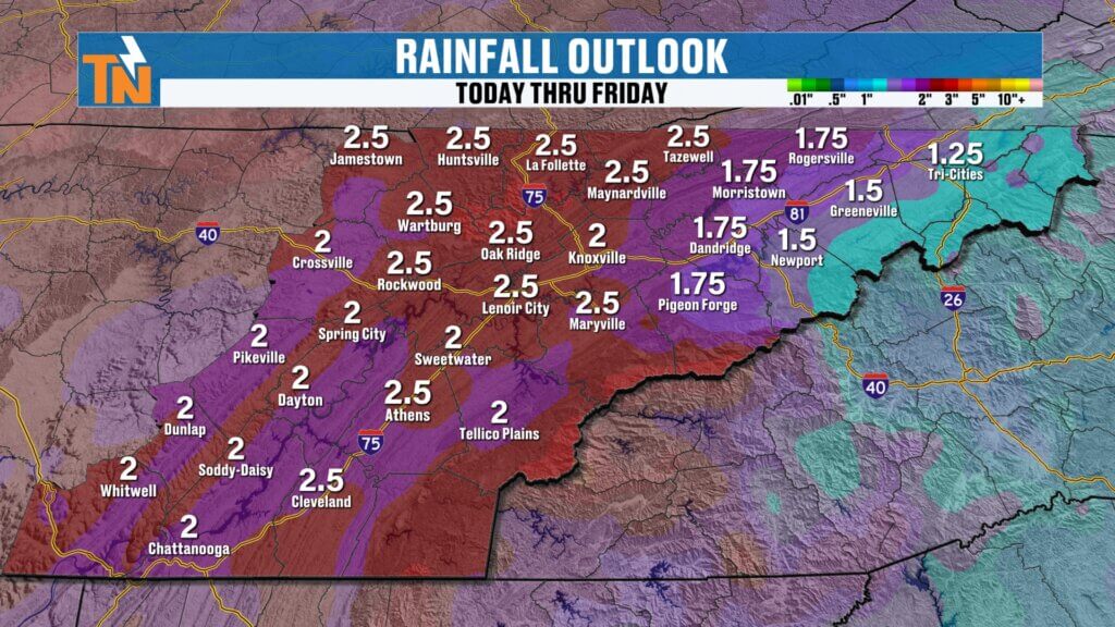 - Over 2 inches possible by Friday