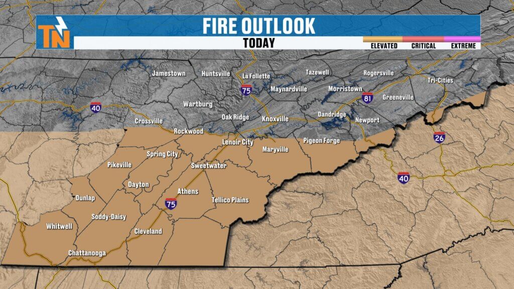 If you’re outdoors today, especially in southern parts of East Tennessee, be mindful of anything that could spark a fire.