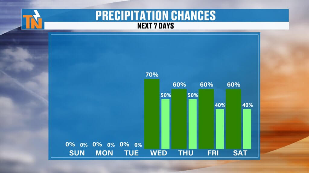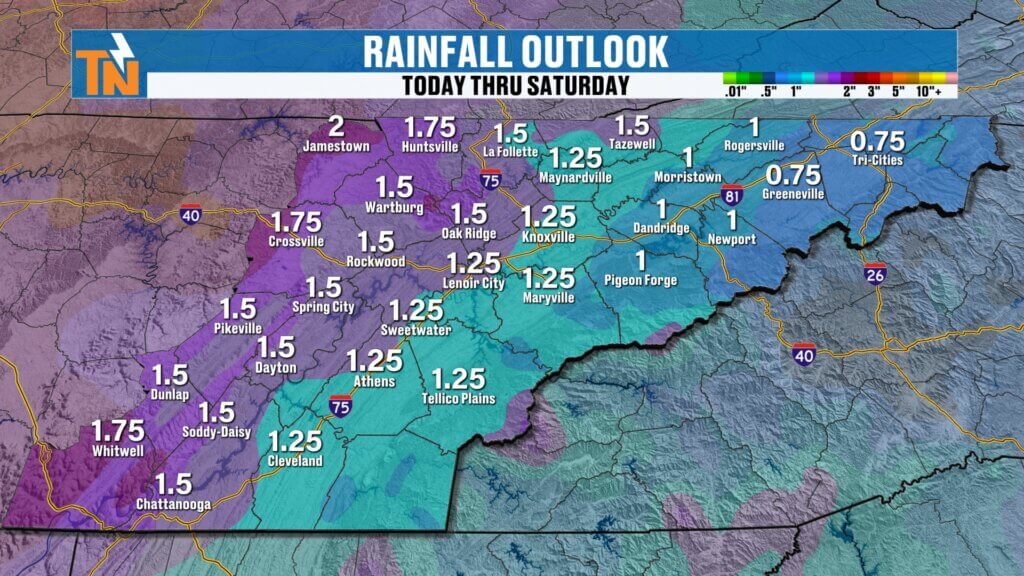 Have a great Sunday, and don’t forget—you can always stay up to date with the latest conditions, radar, and forecasts on the eastTNweather app.Wednesday–Friday: Periods of rain, possibly heavy at times