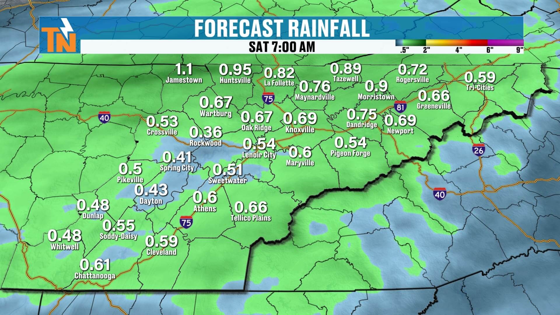 Turn on notifications and check the interactive radar in the East Tennessee Weather app—great for timing tonight’s line into your neighborhood. I’ll post updates on snowfall potential for Sunday night into Monday in the app, too.
