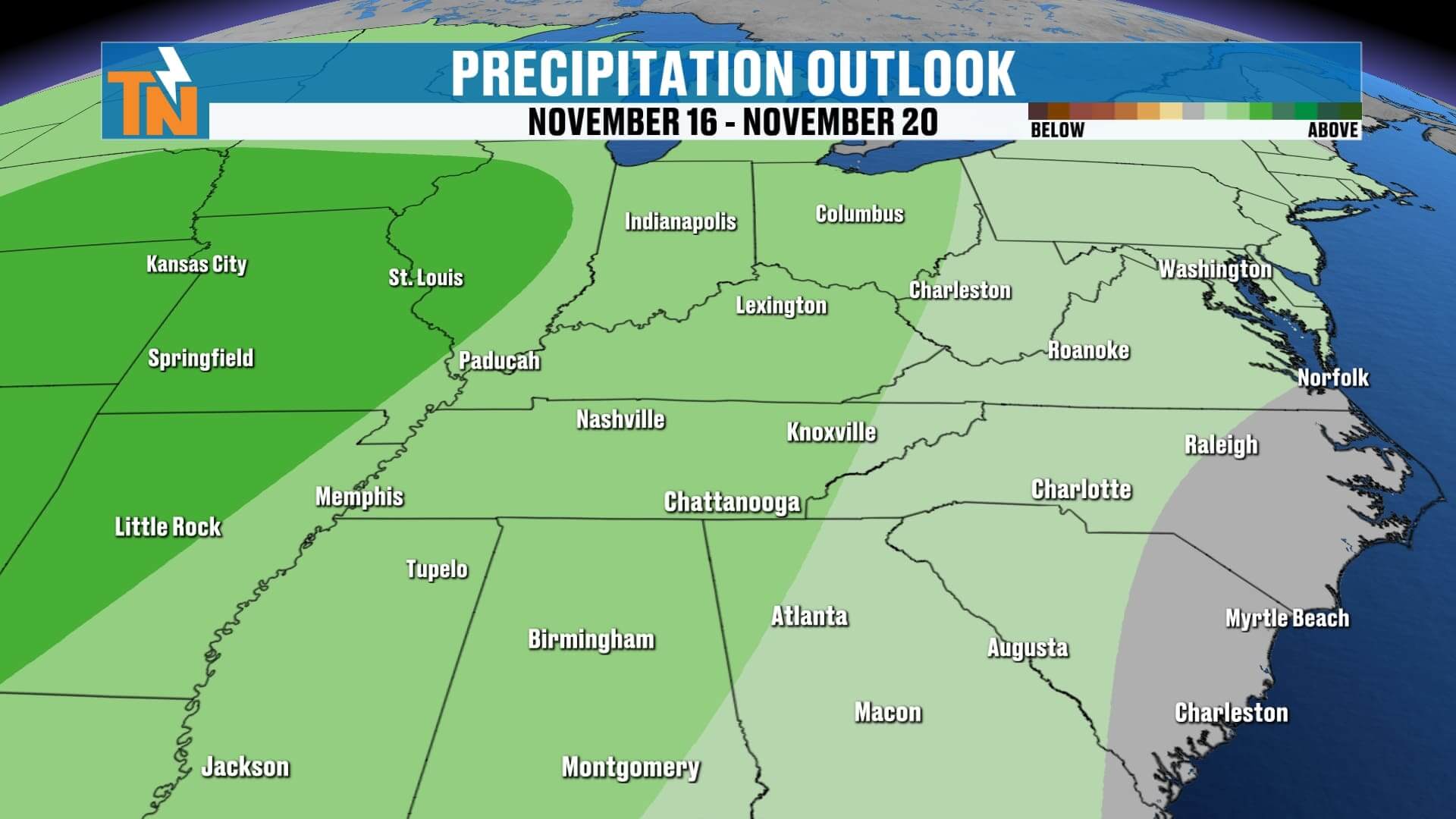 • Cumberland Plateau: Dusting to 1″ on grassy/rooftop surfaces