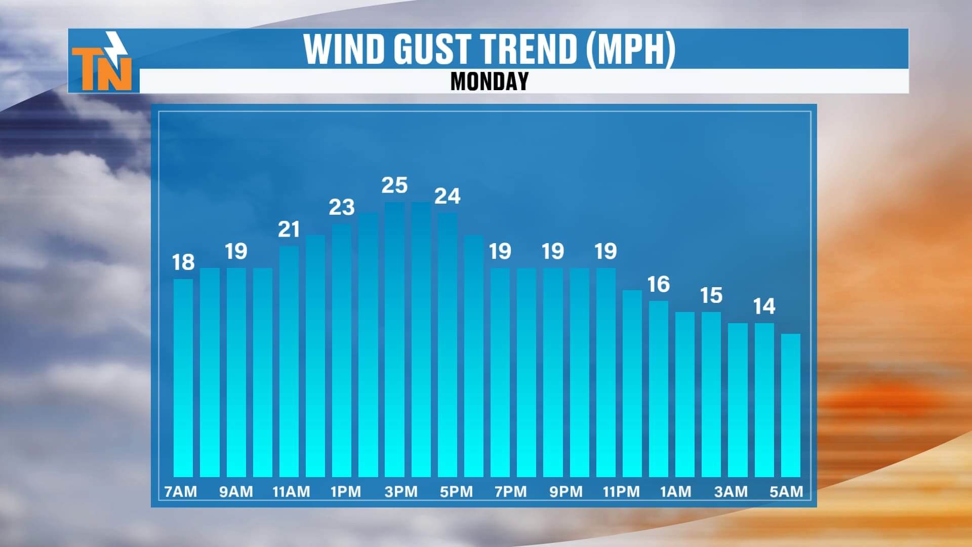 • Wind: Northwest 10–20 mph, gusting higher