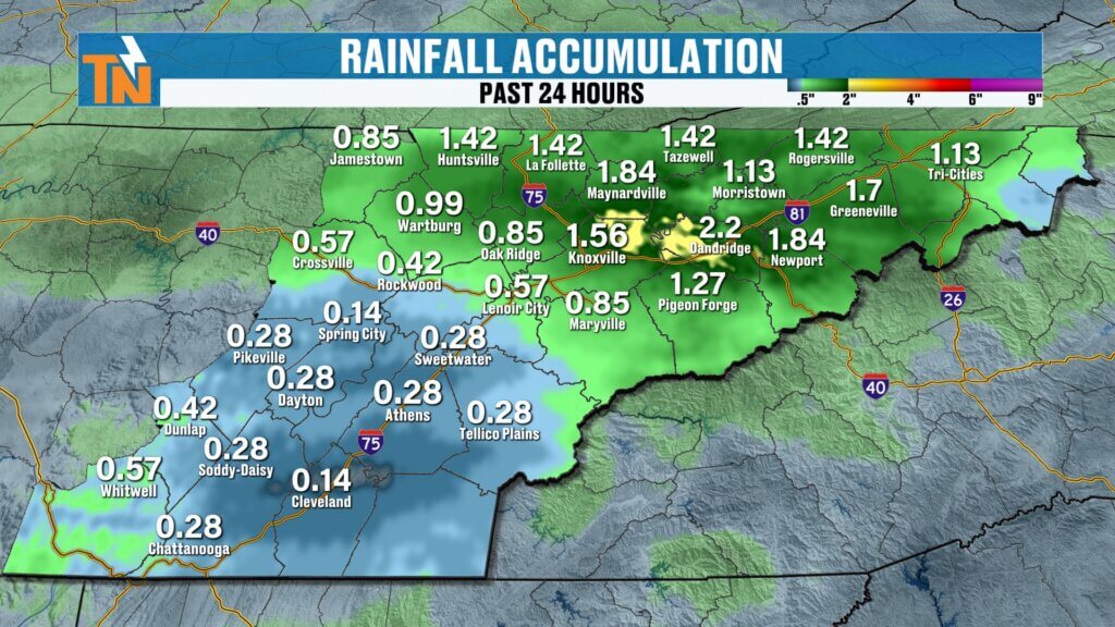 - Downtown Knoxville recorded nearly 1.5 inches.