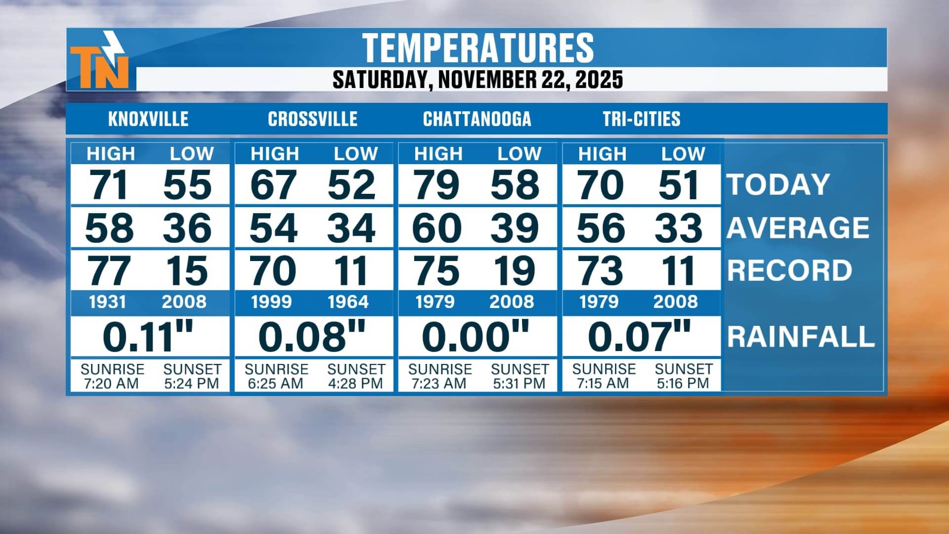 Check back throughout the week — and don’t forget, you can track everything 24/7 with the East Tennessee Weather App.