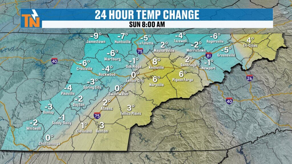Once the midweek cold front moves through, cooler air will briefly settle into the Tennessee Valley.