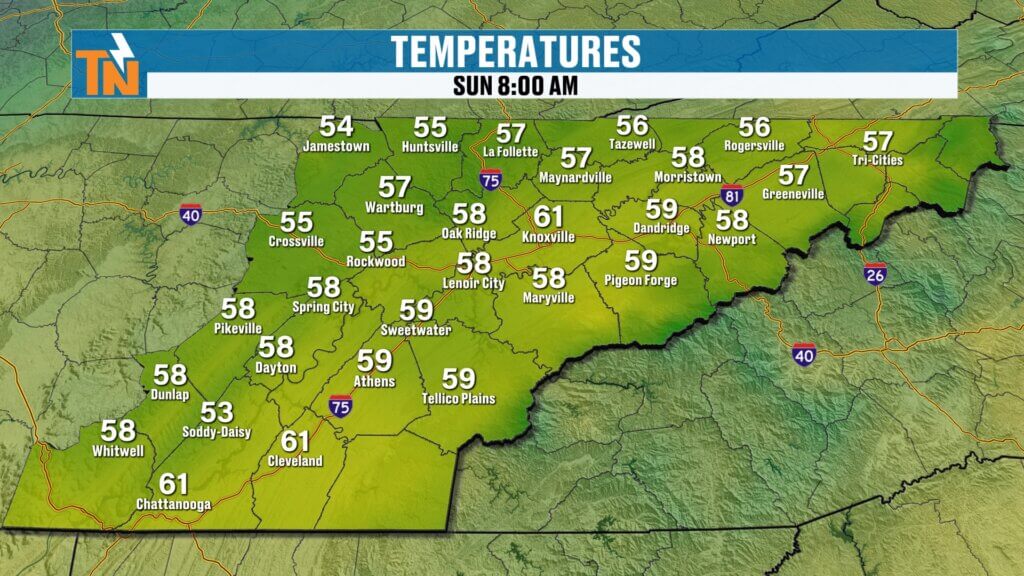 Happy Sunday and thanks for checking in with your East Tennessee morning weather update. After a warm and somewhat active Saturday, the big takeaway is that severe weather largely stayed away from our area. Instead, we picked up some light rainfall and experienced record-breaking temperatures across parts of the Tennessee Valley.