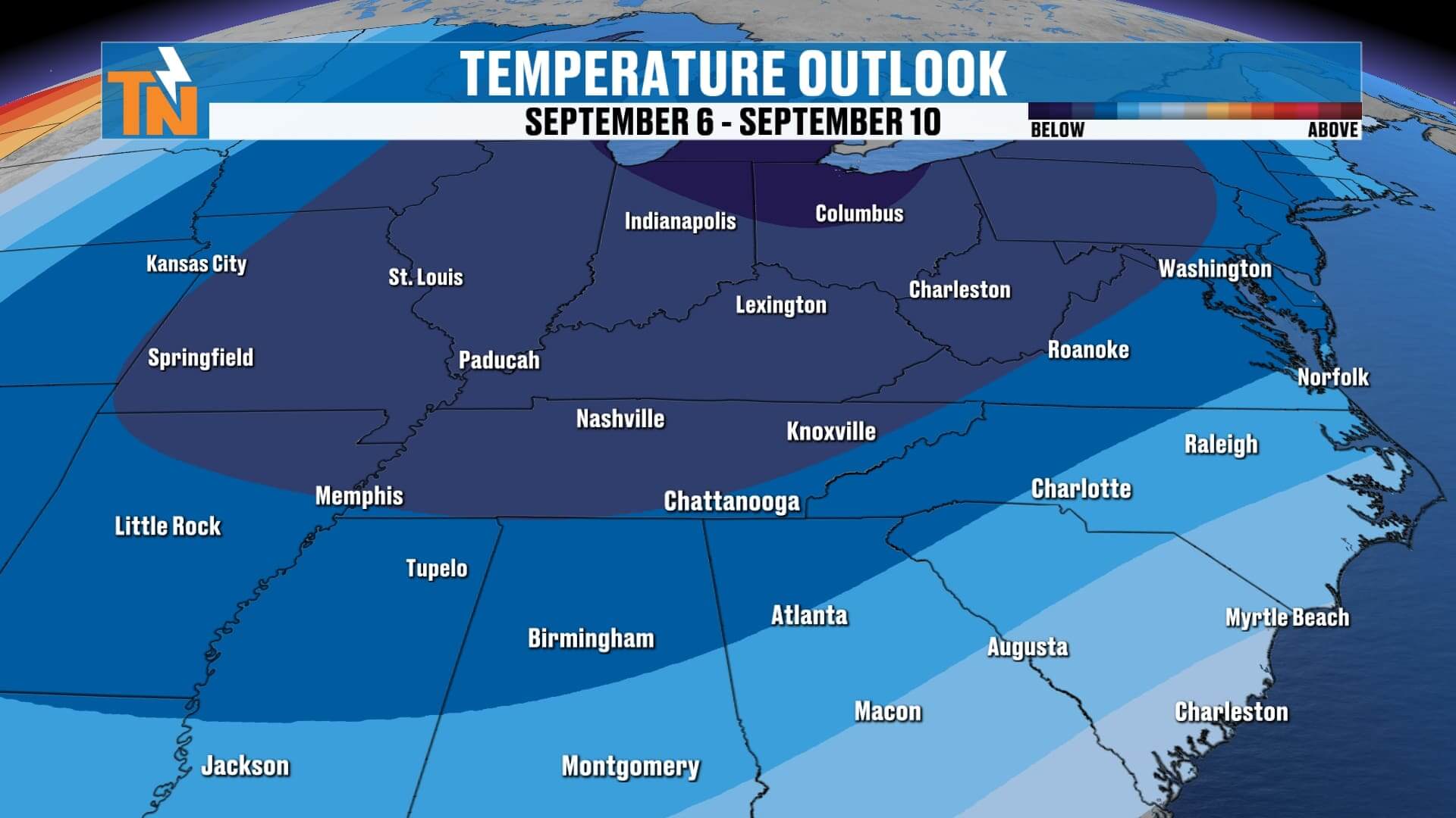 East Tennessee, enjoy this Sunday—most of us will stay dry with just clouds and spotty storms in the mountains and southern valley. Labor Day shifts rain chances west to the Plateau, while the Valley holds onto mostly dry weather. By mid to late week, scattered storms return, followed by a pair of cold fronts that will reset our pattern with another refreshing taste of fall.