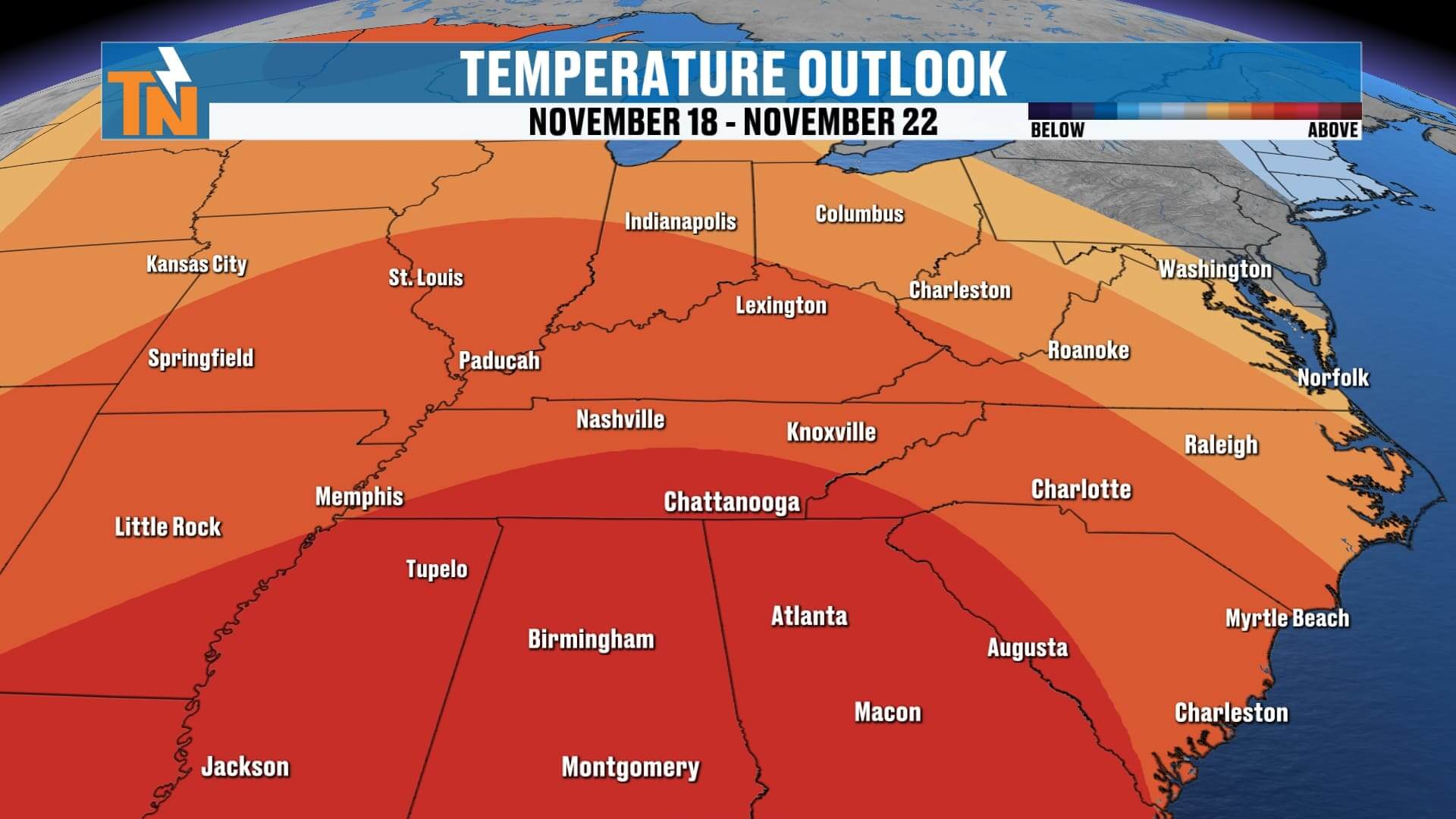 If you’ve got evening plans, grab a light jacket. Temperatures will dip into the mid-50s by 6 p.m. and down to the mid-40s by 10 p.m. It’ll be another cool, comfortable night across East Tennessee — perfect for dinner on the patio or a little early holiday shopping.