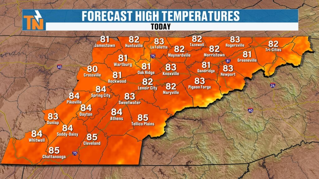 - A few storms may drift into Upper East Tennessee and the I-81 corridor