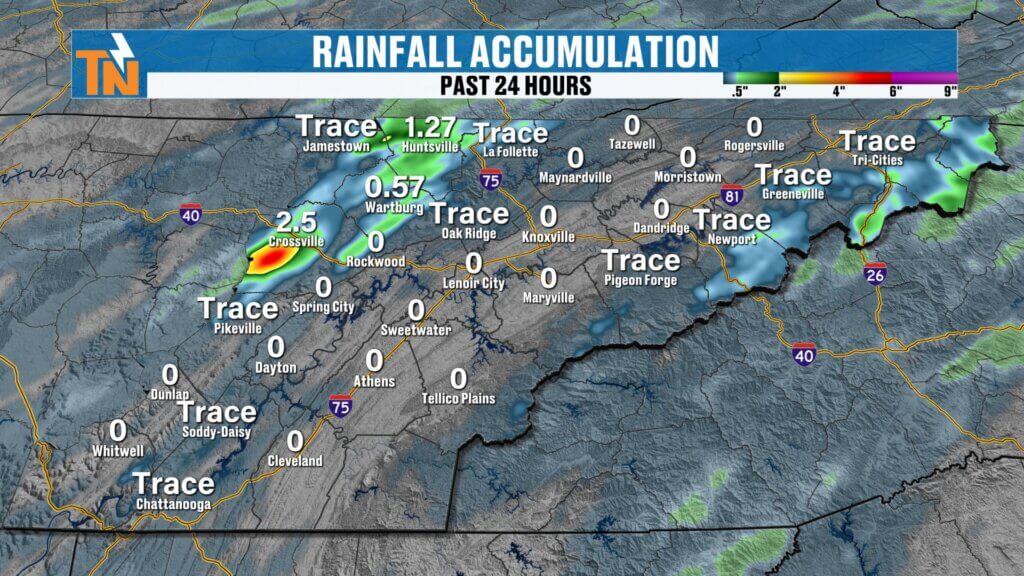 Over 2.5 inches of rain in parts of the Cumberland Plateau