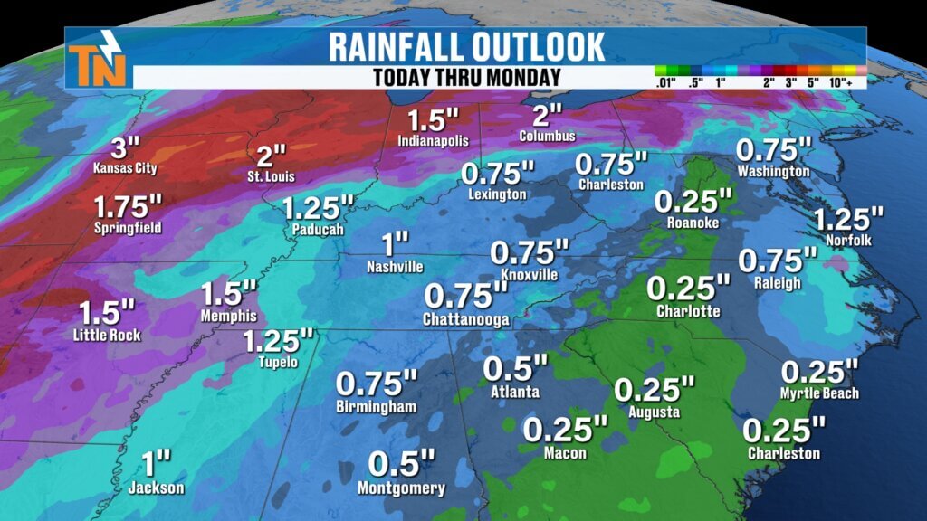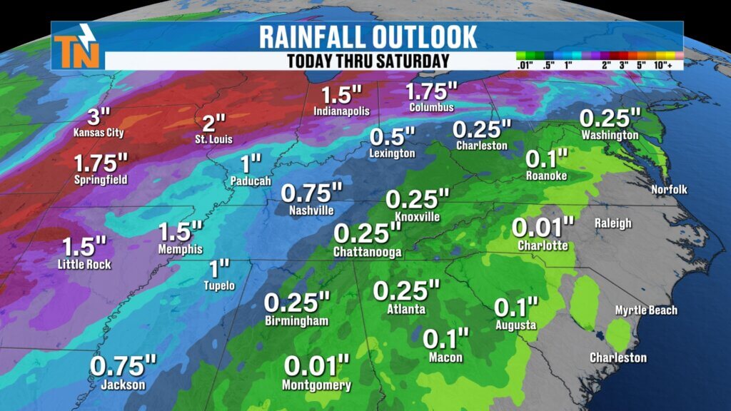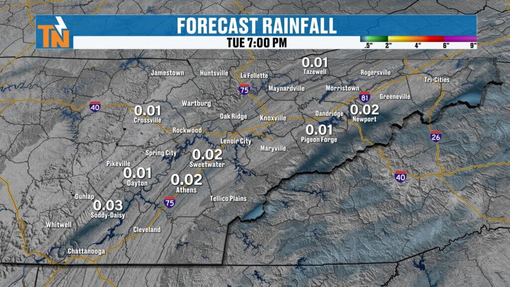 Most of the heavier rain stays north and west of East Tennessee.forecast continues to evolve.