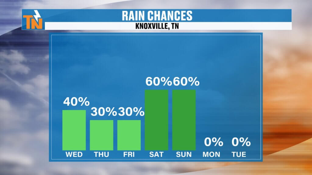 - Best chances across the Cumberland Plateau and Smoky Mountains