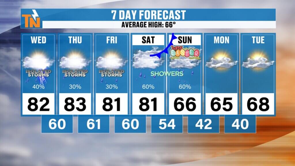 It’s another warm, breezy, and slightly more humid day with a chance for pop-up storms—mainly in the higher terrain. The bigger story is the weekend cold front, which could bring much-needed rain and impact early Easter plans.