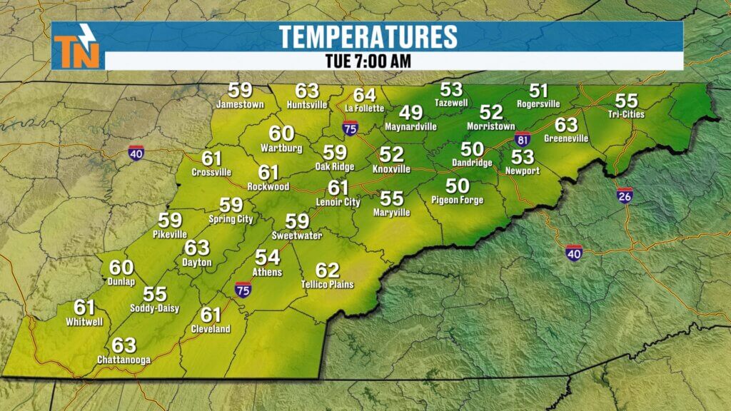 - Morning temperatures in the 50s and 60s