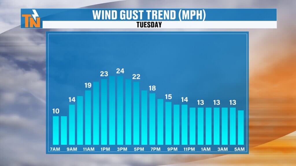- Gusts around 20 to 25 mph