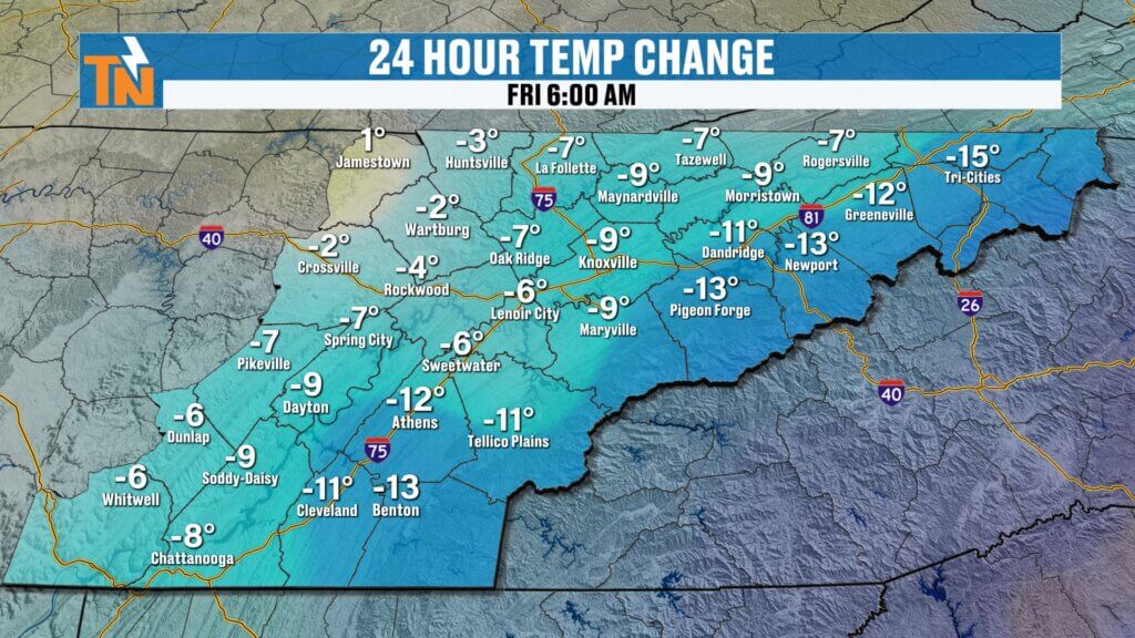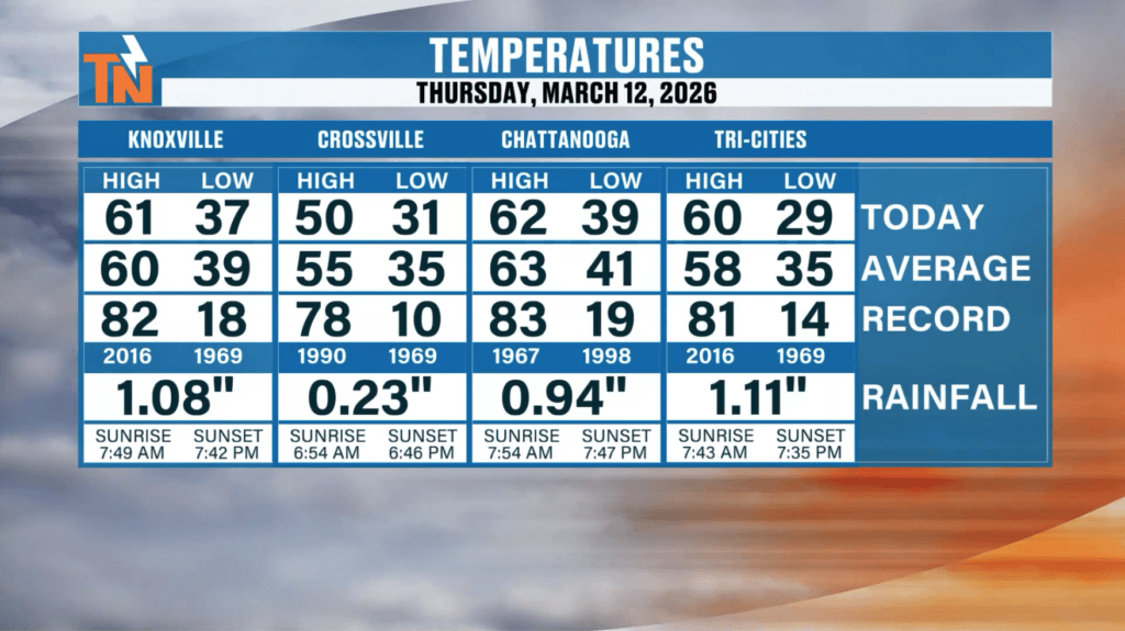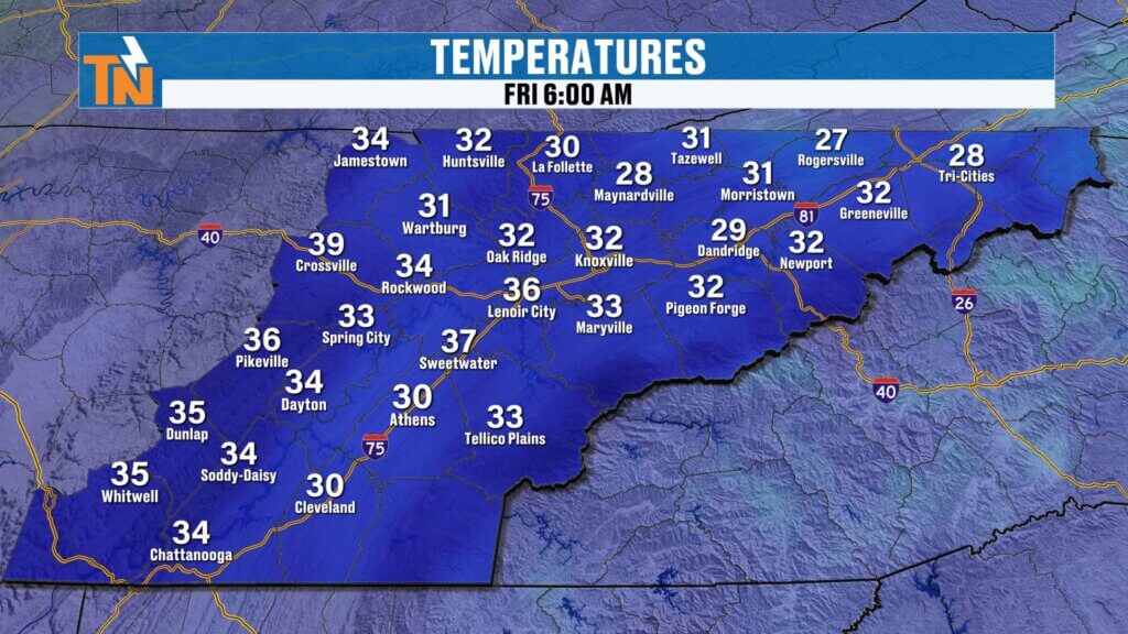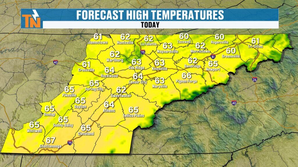 By this afternoon, highs will reach the low to mid 60s across East Tennessee.