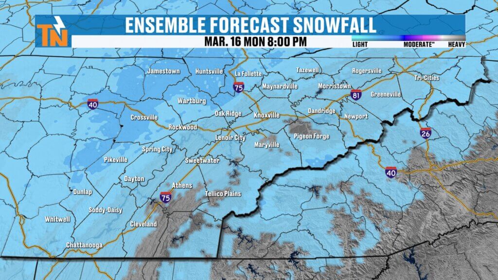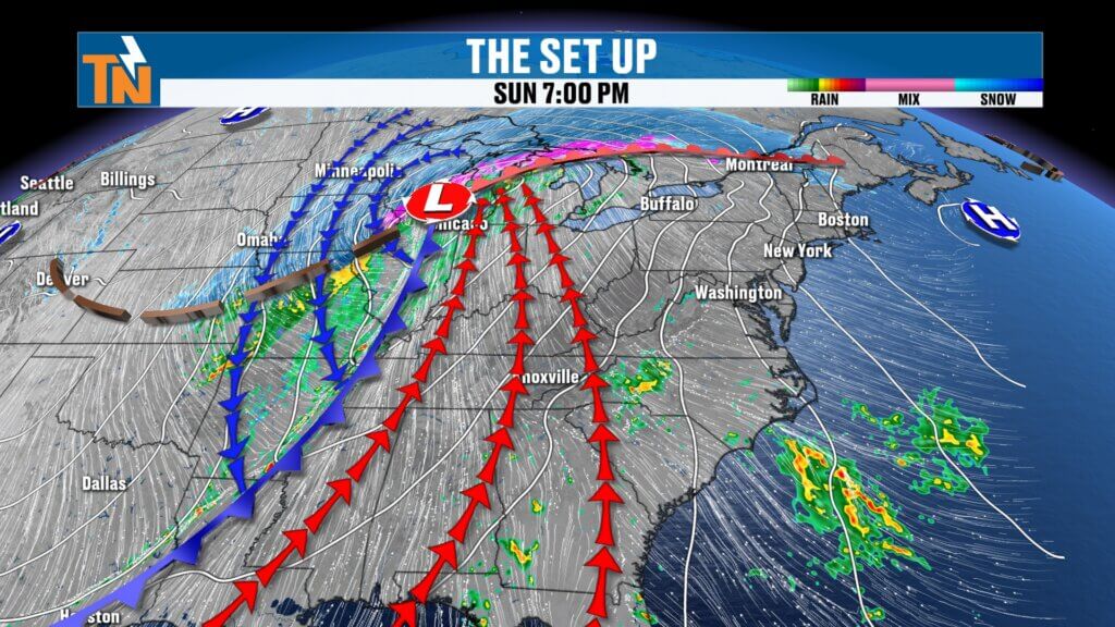 This system will strengthen as it approaches, bringing showers and thunderstorms into East Tennessee overnight Sunday into early Monday morning.