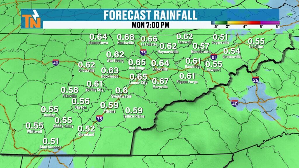 This system should bring around a half inch of rainfall across the region, though some areas could see slightly higher totals.